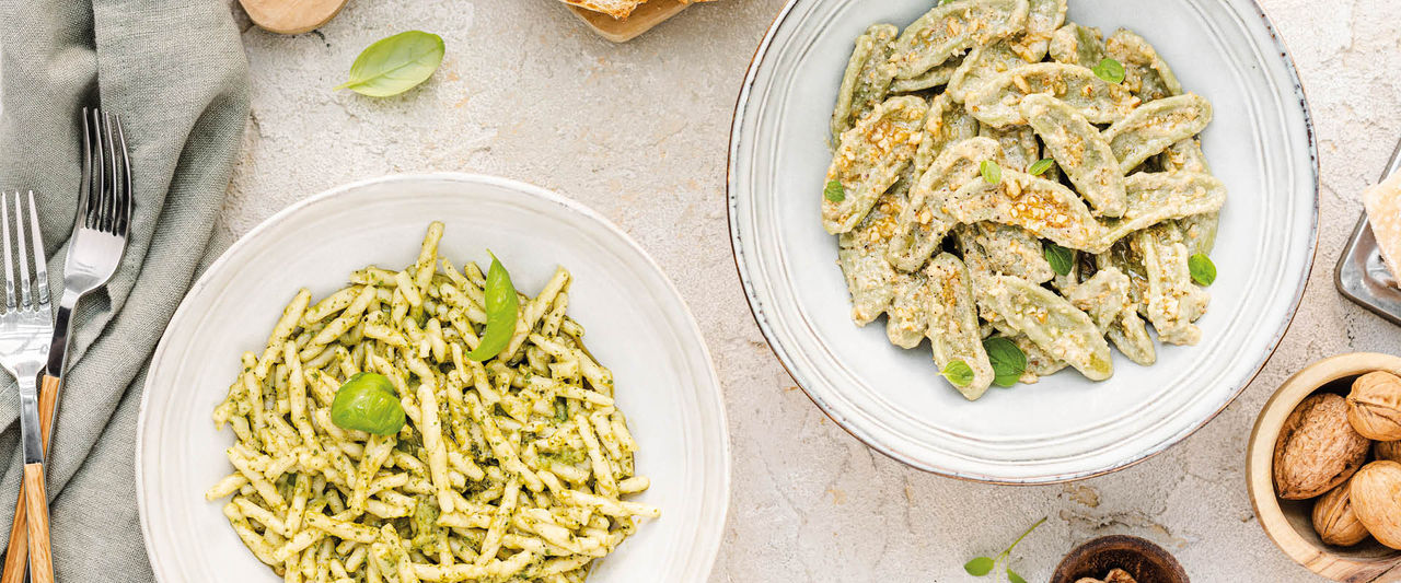 A drizzle of oil to enhance the taste of everyday meals, from warm bread to winter soups. Pestos tell about Liguria: basil and walnuts merge into enveloping aromas. Balsamic Vinegar enhances every dish thanks to its sweet, intense flavor. Simple ingredients, authentic gestures, moments to share.