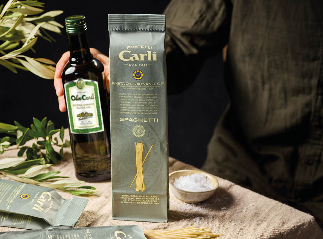 PRODUCED FOR FRATELLI CARLI S.p.A. Società Benefit Via Garessio 11/13 - 18100 IMPERIA - ITALY by Premiato Pastificio Afeltra - Via Roma 20 80054 GRAGNANO (NA) – ITALY
